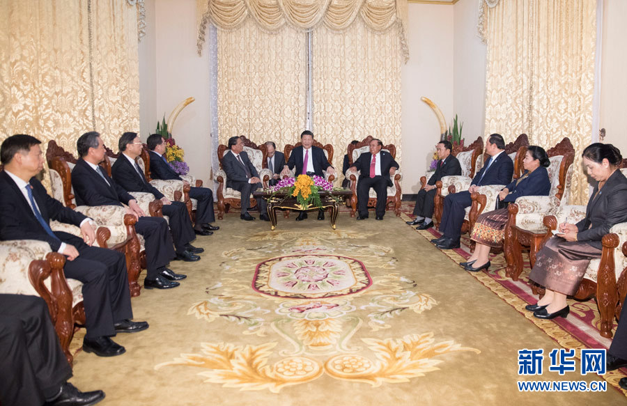 11月13日,中共中央總書記、國家主席習(xí)近平在萬象會(huì)見老撾人民革命黨中央委員會(huì)前總書記、前國家主席朱馬里。老撾人民革命黨中央委員會(huì)總書記、國家主席本揚(yáng)等參加會(huì)見。新華社記者 丁林 攝