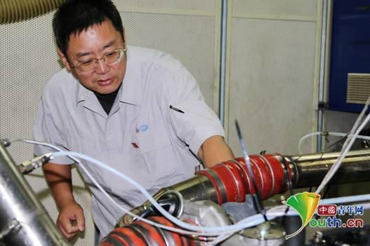 鹿新弟在檢查機器設備。中國青年網記者張群 攝