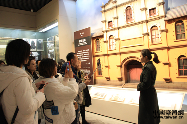 記者們認(rèn)真聽講解員介紹朱德的成長經(jīng)歷。(中國臺(tái)灣網(wǎng) 李寧 攝)