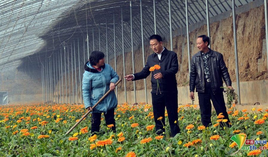 裴春亮幫扶鮮花種植戶。本人供圖