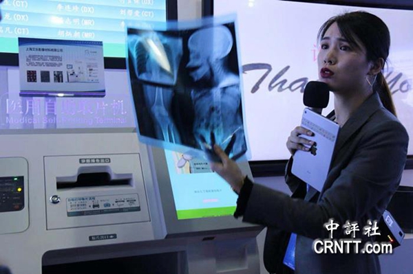 講解員演示醫(yī)用自助取片機(jī)。(圖片來(lái)源:中評(píng)社)