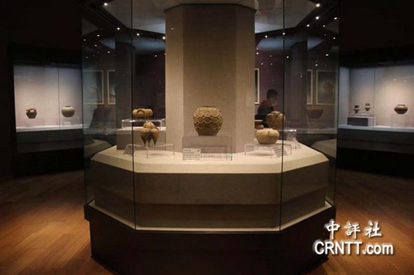 古陶藝術館內陳列展示發掘的古陶。(圖片來源:中評社)