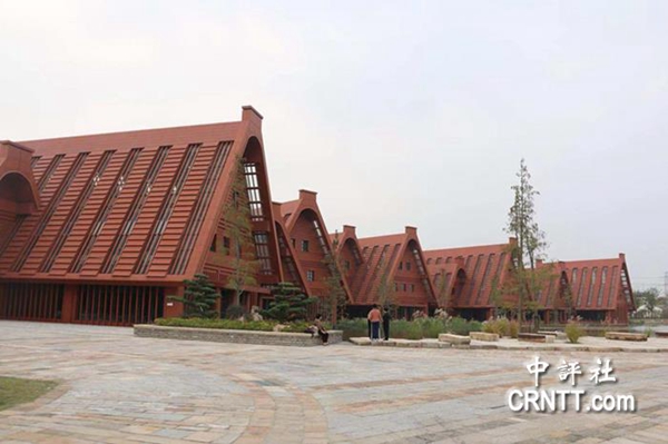 漂浮在富林湖中的廣富林文化展示館。(圖片來源:中評社)