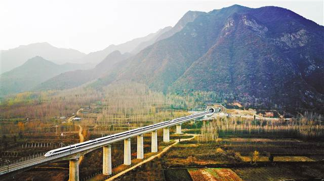 2017年12月6日,西安至成都的高鐵列車呼嘯穿過秦巴山脈,開辟了中國西部發展新格局。(新華社記者 劉瀟 攝)