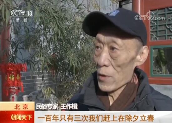 民俗專家 王作楫:一百年只有三次我們趕上在除夕立春,既是節氣的開始又是春節的開始,倆春落一塊這叫六合同春,寓意家庭和睦、社會和諧、國家安定團結。