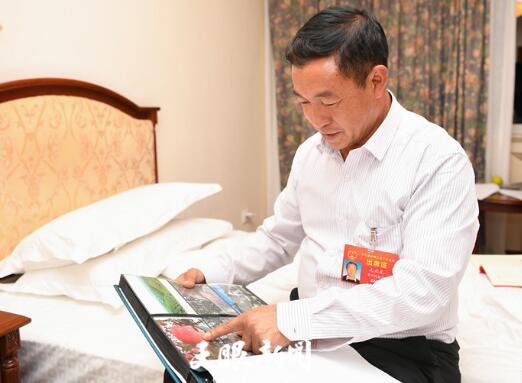 全國人大代表、赫章縣海雀村黨支部書記文正友正在整理一組照片。