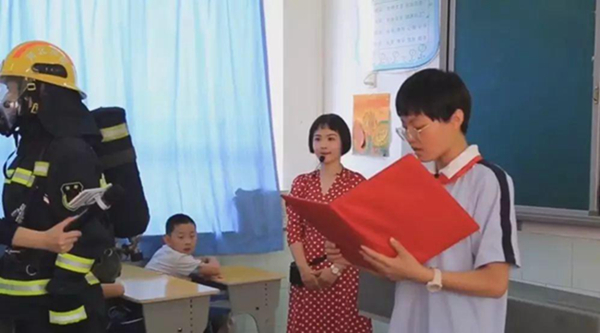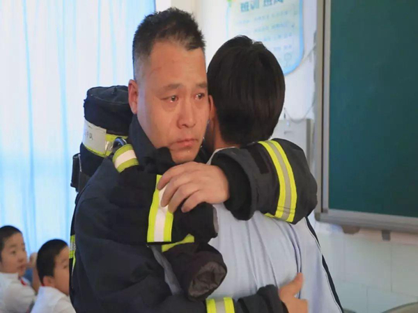 沒想到,靜靜站在講臺上的消防員