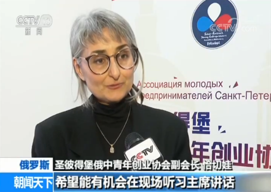 圣彼得堡俄中青年創(chuàng)業(yè)協(xié)會副會長 恰切娃:我們非常期待習(xí)近平主席來訪,希望能有機(jī)會在現(xiàn)場聽習(xí)主席講話,也期待兩國長期保持互惠互利的合作關(guān)系。