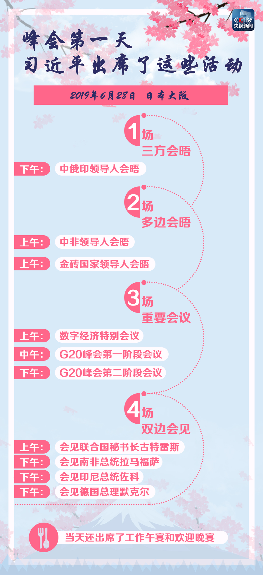 6月29日是G20大阪峰會的最后一天。習(xí)近平主席將繼續(xù)出席G20大阪峰會后續(xù)階段的會議,并同多國領(lǐng)導(dǎo)人舉行雙邊會見,其中與美國總統(tǒng)特朗普的會晤也將于當(dāng)天舉行。請繼續(xù)關(guān)注《時(shí)政新聞眼》。