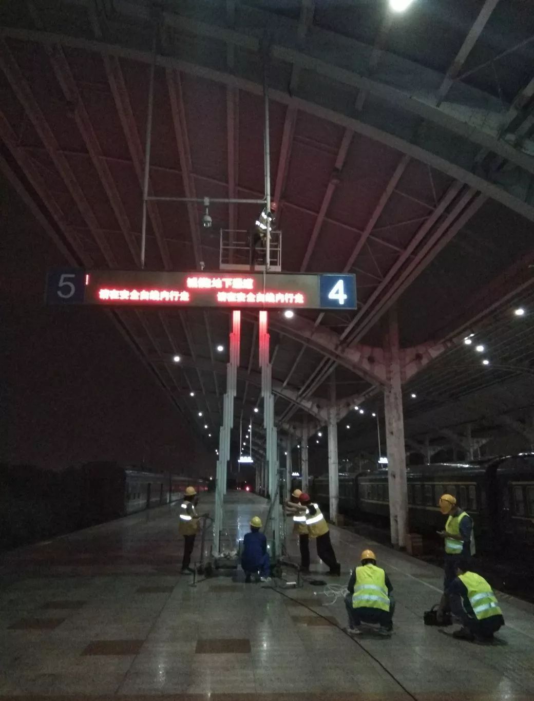 做好杭州東站候車室、站臺軌旁設備 、站名牌、廣告牌、玻璃護欄、燈具照明等的檢查工作