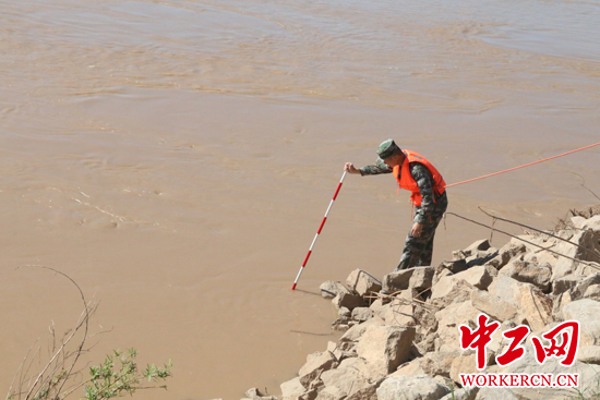 李濤在探摸根石。中工網記者 朱晶晶 攝