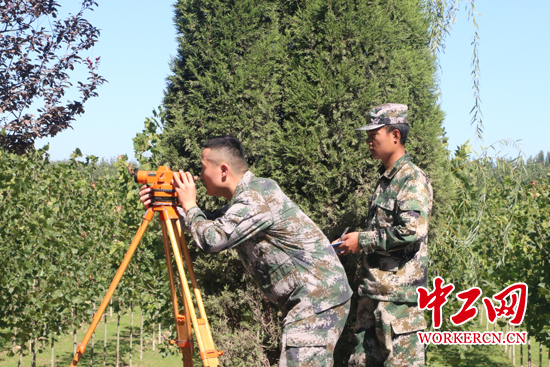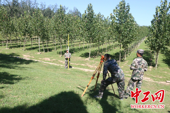 李濤和團隊在進行工程測量。中工網記者 朱晶晶 攝