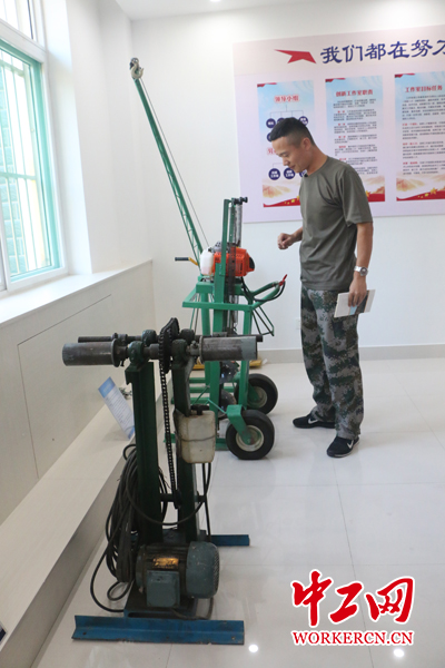李濤在介紹他參與的發明、改進機器工具。中工網記者 朱晶晶 攝