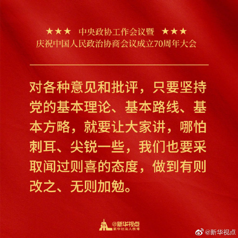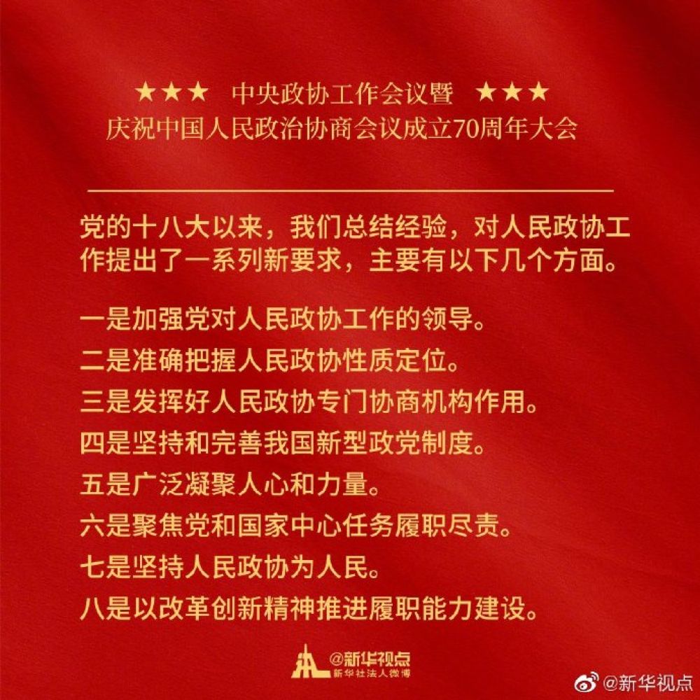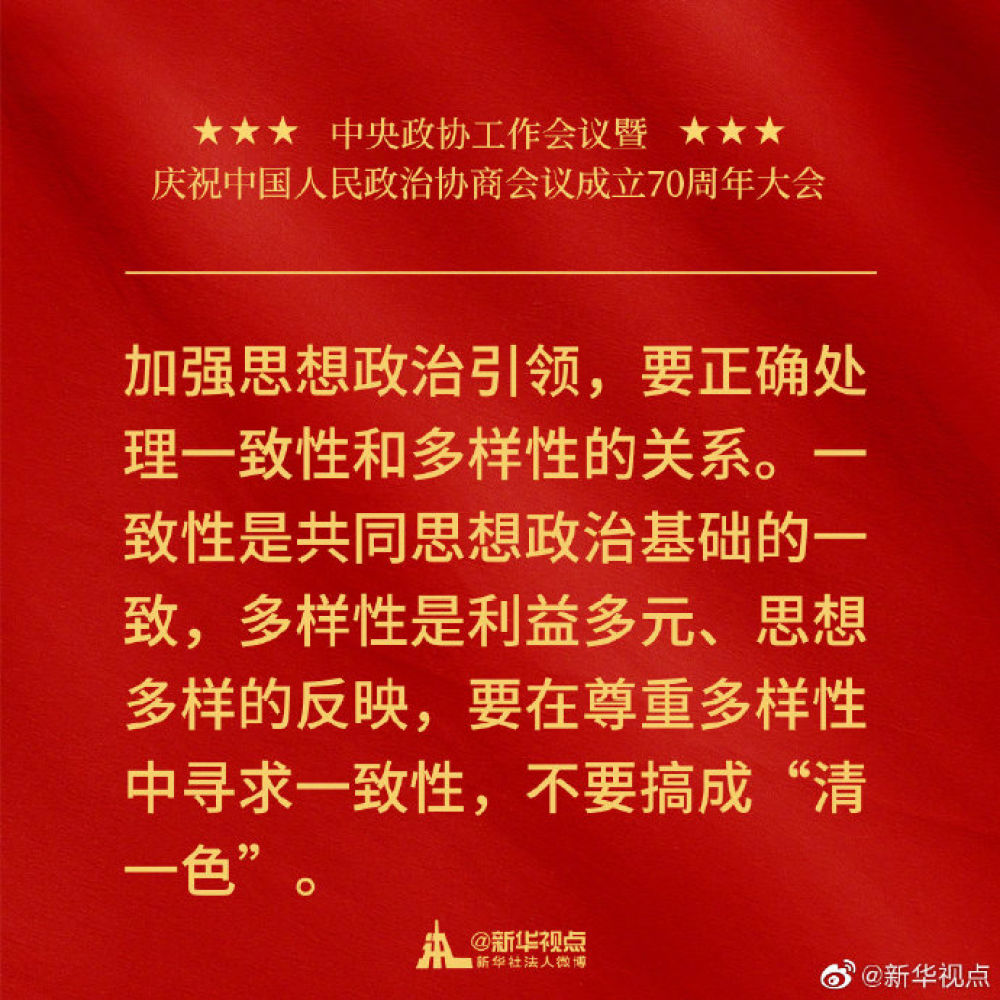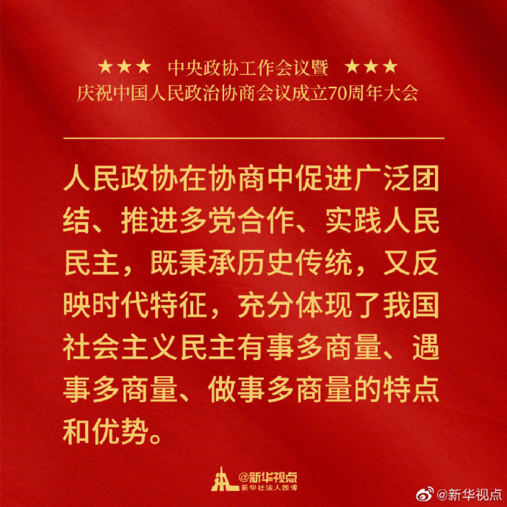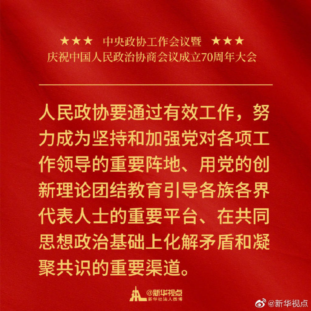金句來了!習近平在中央政協(xié)工作會議暨慶祝中國人民政治協(xié)商會議成立70周年大會上的講話金句!