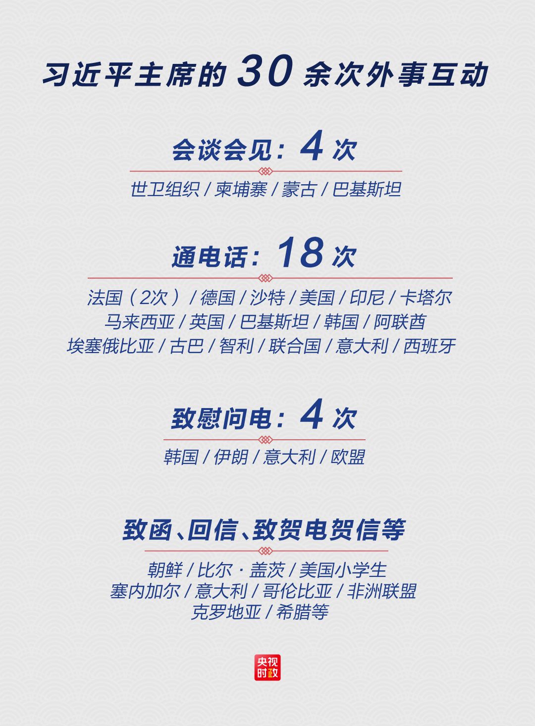 透過戰“疫”以來習主席的30余次外事互動,可以清晰看到這些關鍵詞。