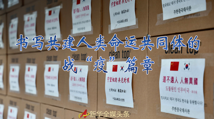 2月27日,在韓國首爾,中國駐韓國大使館緊急籌備的醫用口罩準備運往大邱。箱子外包裝上寫著:“道不遠人 人無異國”“守望相助 共克時艱”等支持的話語。 新冠肺炎疫情發生以來,習近平主席時刻關注國內外疫情形勢,高度重視抗疫國際合作,多次作出重要指示批示,頻頻開展元首外交,從構建人類命運共同體高度,親自推動疫情防控國際合作。 新華社發(中國駐韓國大使館供圖)