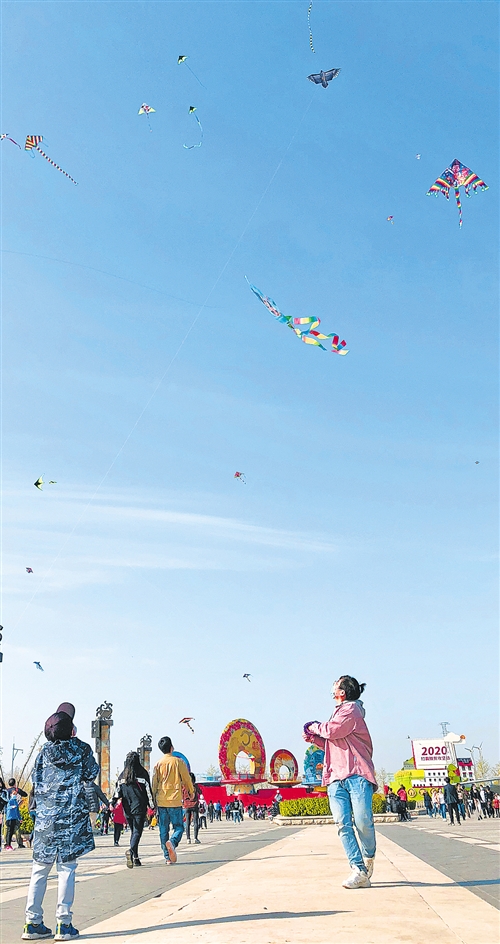 4月5日,北京市南海子公園,游人放飛風箏,樂享春光。 經濟日報記者 馬洪超攝