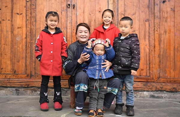 這是4月24日拍攝的吳美金(左二)和她孫子孫女的合影。1967年出生的吳美金,1992年嫁入飛蟲村(現(xiàn)十八洞村飛蟲寨)時(shí),只有爛泥路的飛蟲村不僅田土少,掙錢活路也少,生活十分困難。2014年,吳美金加入了十八洞村苗繡特產(chǎn)農(nóng)民專業(yè)合作社,從小就會(huì)的苗繡傳統(tǒng)手藝如今成了家庭增收的法寶,不僅在家門口就把錢掙了,同時(shí)還能照顧年幼的孫子孫女。“現(xiàn)在的日子,比年輕的時(shí)候好多了。”吳美金說。新華社記者 薛宇舸 攝