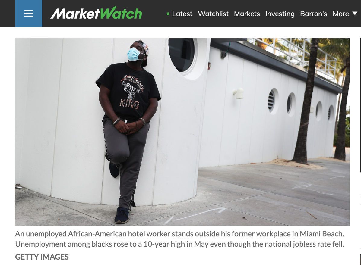 隨著過去幾個月內(nèi)美國新冠肺炎疫情的暴發(fā),圍繞種族間貧富差距和區(qū)別對待的問題也在不斷放大,從而導致了矛盾激化。最為直觀的就是,今年5月,非裔工人的失業(yè)率已飆升至16.8%,達到了2010年初以來的最高水平。非裔家庭本就資產(chǎn)積累較少,一旦失業(yè),則意味著生活如履薄冰。
