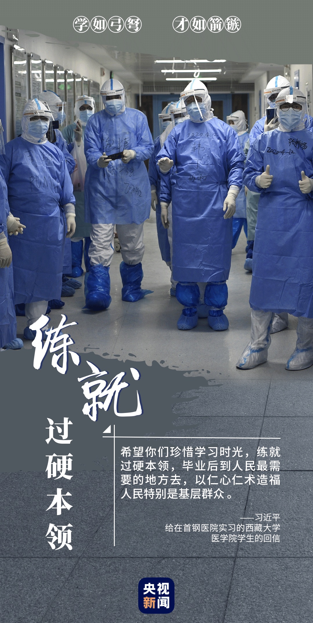 練過硬本領(lǐng),做新時代奮斗者。在決勝全面小康、決戰(zhàn)脫貧攻堅的收官之年,在實現(xiàn)“兩個一百年”奮斗目標(biāo)的歷史交匯之年,新時代中國青年同億萬人民一道,在實現(xiàn)中華民族偉大復(fù)興中國夢的新長征路上奮勇搏擊。
