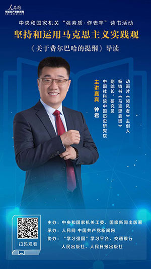 中國共產黨新聞網北京8月19日電 (謝磊 曹淼)日前,2020年中央和國家機關“強素質·作表率”讀書活動舉辦第三講,圍繞“重溫馬克思主義經典,深化習近平新時代中國特色社會主義思想學習”這一主題,邀請中國社會科學院中國歷史研究院副院長、研究員鐘君做客講堂,以“堅持和運用馬克思主義實踐觀”為主題,導讀《關于費爾巴哈的提綱》。