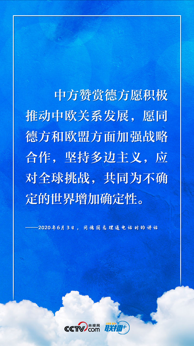 聯(lián)播+新冠肺炎疫情暴發(fā)以來,中國和德國、歐盟相互支持、相互幫助。習(xí)近平主席多次與德歐領(lǐng)導(dǎo)人開展“云外交”,闡明加強合作的重要性。