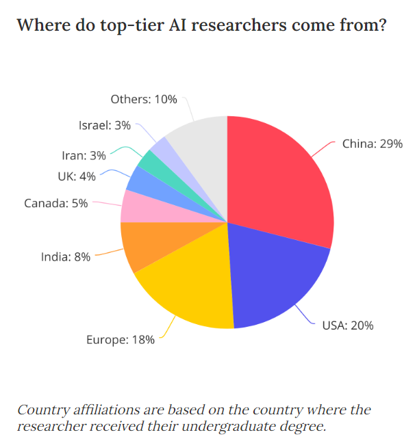 作為世界上最大的移民國家,美國在眾多領域的領先地位離不開國際人文交流的貢獻。保爾森基金會智庫馬克·波羅最新發布的報告顯示,美國科技進步與中國人才輸入密切相關,以人工智能領域為例,全美頂尖的人工智能人才有將近三分之一來自中國。
