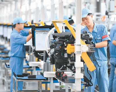 今年以來(lái),上海汽車(chē)集團(tuán)股份有限公司乘用車(chē)福建分公司通過(guò)稅務(wù)部門(mén)享受社保費(fèi)減免約197萬(wàn)元,減稅紅利為企業(yè)生產(chǎn)和產(chǎn)業(yè)高質(zhì)量發(fā)展注入動(dòng)力。圖為工人在上汽集團(tuán)乘用車(chē)寧德基地總裝車(chē)間內(nèi)裝配汽車(chē)儀表中控。