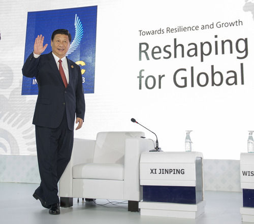 2013年10月7日,國家主席習近平在印度尼西亞巴厘島出席亞太經合組織工商領導人峰會,并發表《深化改革開放共創美好亞太》的重要演講。新華社記者 李學仁 攝