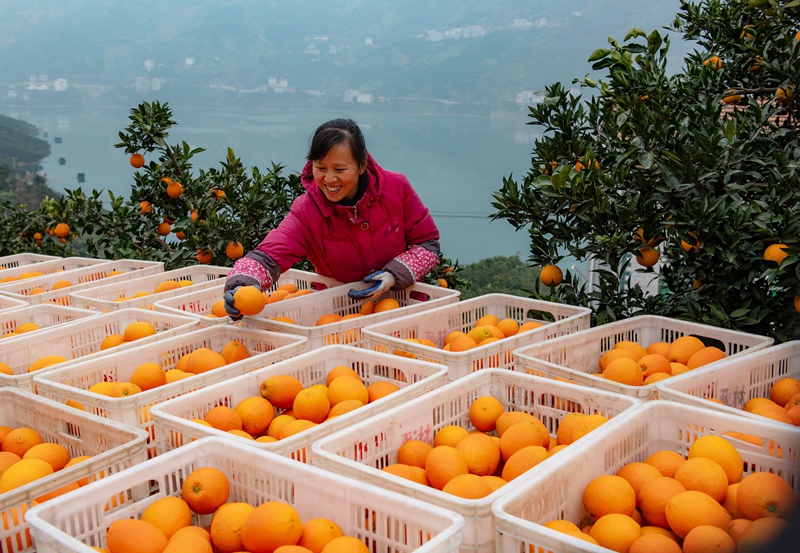 △2020年12月27日,湖北省秭歸縣水田壩鄉下壩村村民在整理即將出售的臍橙。
