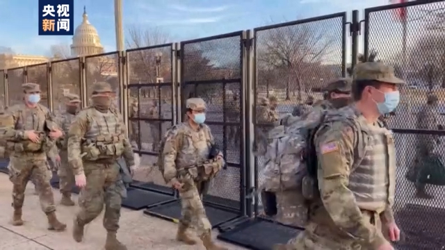 連日來,美國首都華盛頓的安保措施日趨嚴密,國民警衛隊隊員荷槍實彈巡邏。五角大樓日前宣布,已派遣2.5萬名國民警衛隊士兵協助總統就職典禮的安保工作。