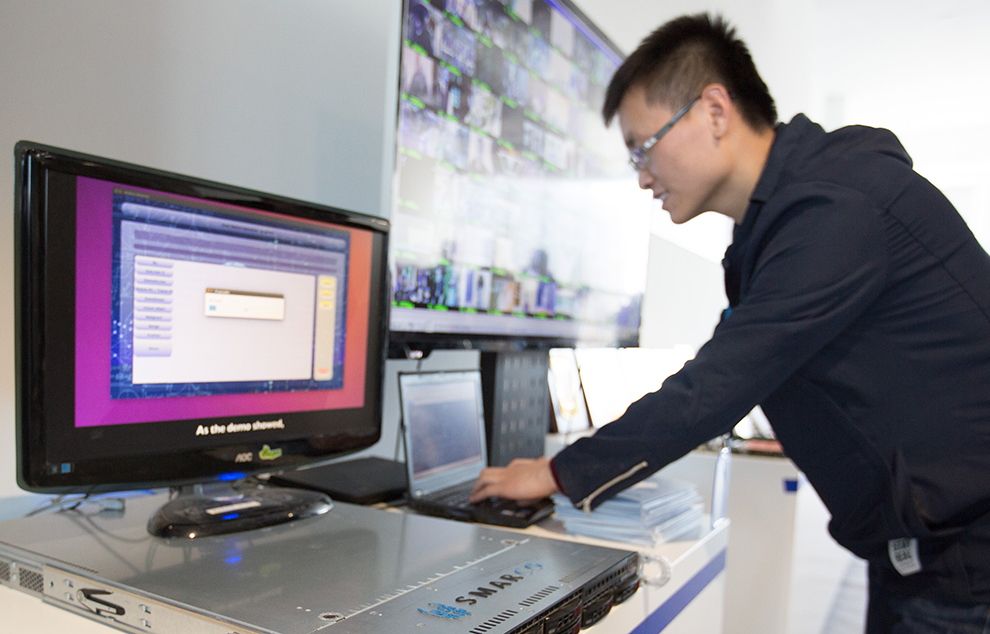 △工作人員在現(xiàn)場演示高通量人工智能一體機的實際應用。
