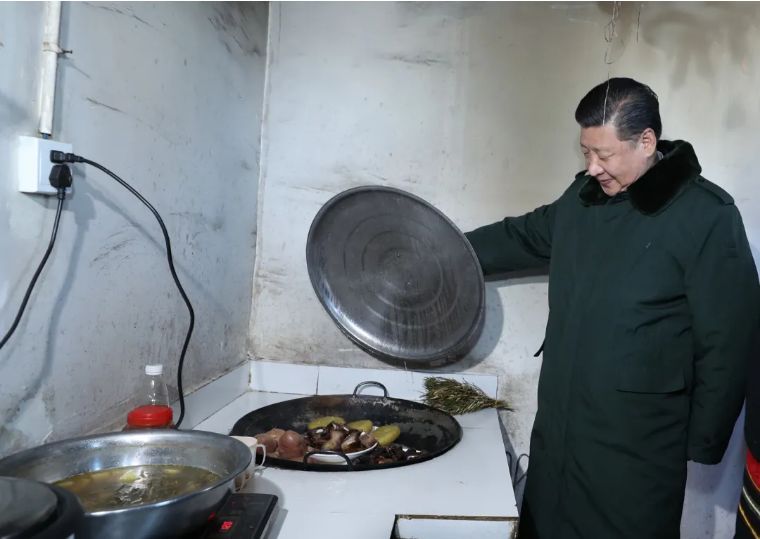 ↑2017年1月24日,習近平在河北張家口市張北縣小二臺鎮德勝村村民徐學海家炸年糕。