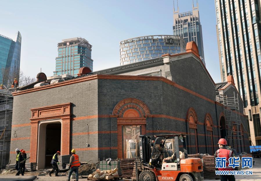 中共一大紀念館正在加緊建設(2月4日攝)。新館建設工地有100多名工人留在上海過春節。新華社記者 劉穎 攝