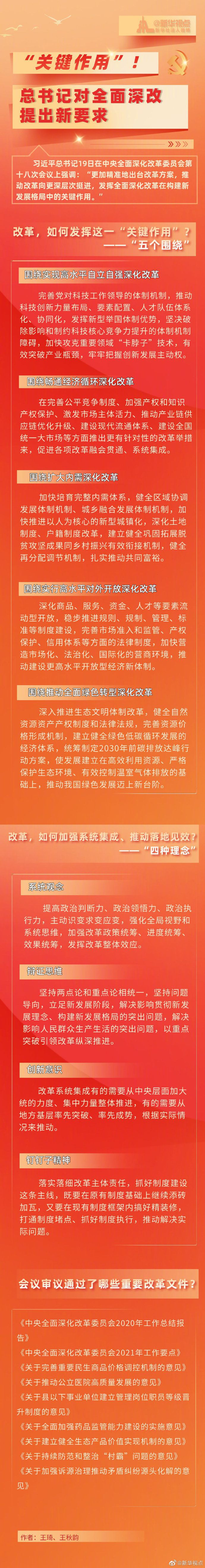 習近平總書記19日在中央全面深化改革委員會第十八次會議上強調:“更加精準地出臺改革方案,推動改革向更深層次挺進,發揮全面深化改革在構建新發展格局中的關鍵作用。”讀圖,來看這一“關鍵作用”——