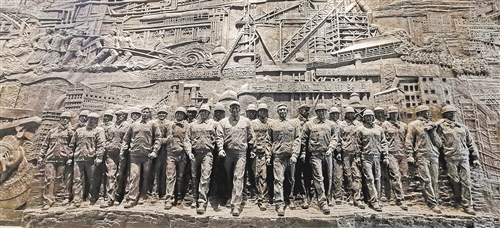 鞍鋼集團(tuán)博物館大廳內(nèi)的勞模群像浮雕。經(jīng)濟(jì)日報(bào)-中國經(jīng)濟(jì)網(wǎng)記者 孫潛彤?dāng)z