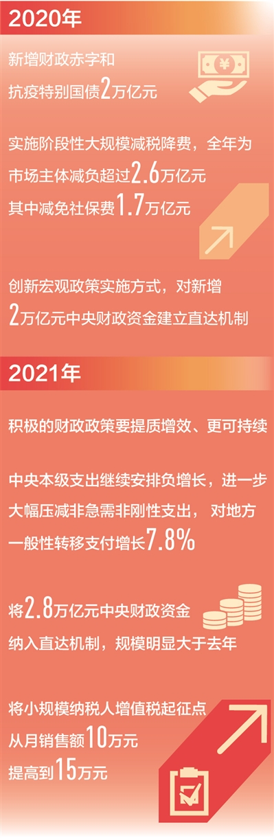 “2021年積極的財政政策要提質(zhì)增效、更可持續(xù),財政工具力度的調(diào)整體現(xiàn)了‘積極’取向,兼顧了‘更可持續(xù)’要求。”張連起委員表示,3.2%左右的赤字率與今年國內(nèi)生產(chǎn)總值增長6%以上的目標(biāo)相匹配;已發(fā)專項債政策效應(yīng)還在釋放,減少新增規(guī)模有利于防范法定債務(wù)風(fēng)險;目前地方公共衛(wèi)生、基本民生支出等可通過正常渠道得到財力保障,不再需要發(fā)行特別國債進(jìn)行特殊轉(zhuǎn)移支付。