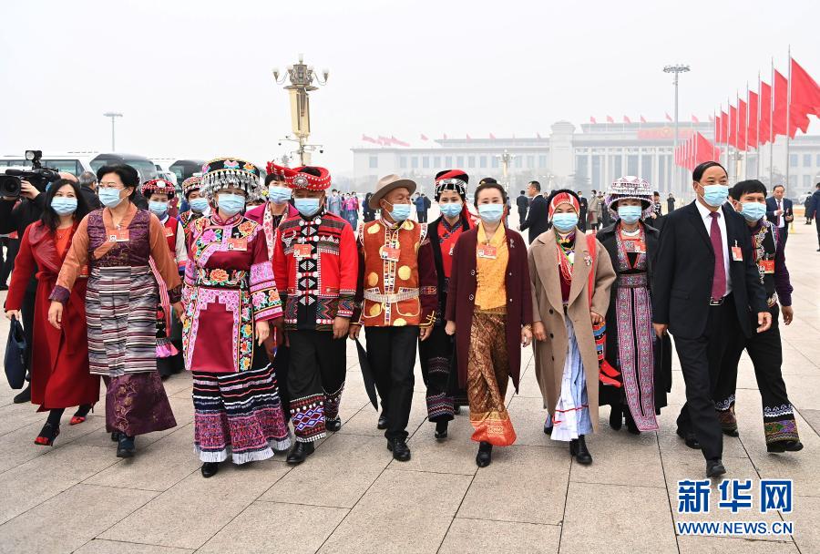 3月5日,第十三屆全國人民代表大會第四次會議在北京人民大會堂開幕。這是全國人大代表走向會場。新華社記者 李鑫 攝