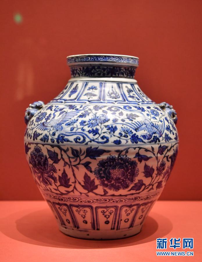 布達(dá)拉宮宮藏元代青花鳳穿牡丹紋罐(1月26日攝)。新華社記者 晉美多吉 攝