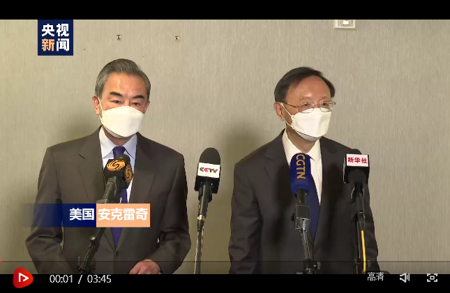 3月18日至19日,中美高層戰略對話在安克雷奇舉行。對話結束后,中共中央政治局委員、中央外事工作委員會辦公室主任楊潔篪、國務委員兼外長王毅接受了媒體采訪。
