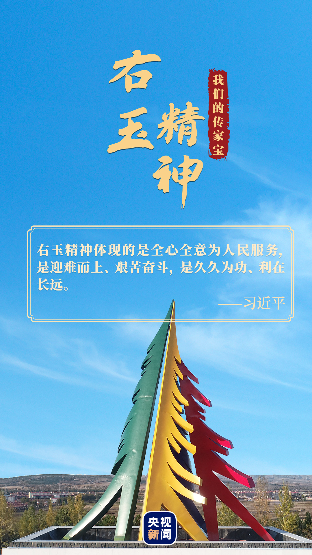 2012年9月28日,習近平同志在中共山西省委上報的《關于我省學習弘揚右玉精神情況的報告》的批示中,對右玉精神做了高度概括:“右玉精神體現的是全心全意為人民服務,是迎難而上、艱苦奮斗,是久久為功、利在長遠!