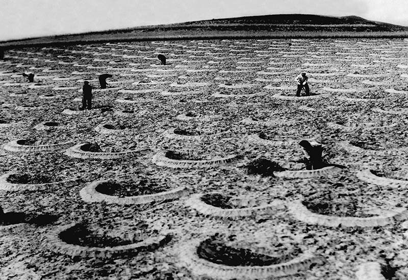 △20世紀六七十年代,右玉縣群眾在荒山植樹。
