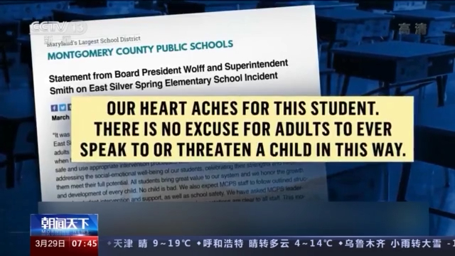 蒙哥馬利縣公立學(xué)校董事會主席和校長26日在一份聲明中說,“我們感到非常心痛,成年人沒有任何借口以這種方式對兒童說話或威脅兒童。”