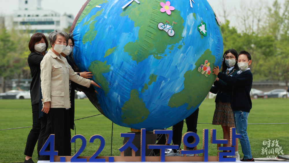 △4月22日,韓國首爾舉行迎接“世界地球日”活動,呼吁防疫和環保。(圖/視覺中國)