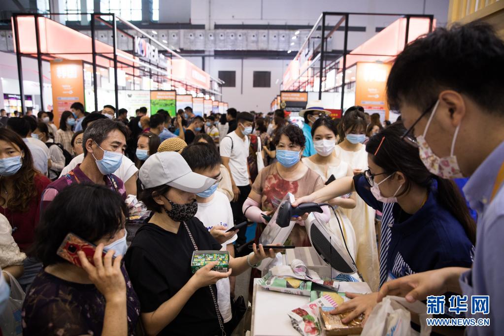 當(dāng)日,首屆中國國際消費品博覽會迎來公眾開放日,不少市民前來觀看展覽、選購商品。
