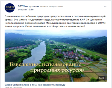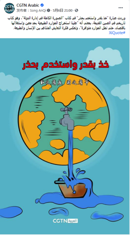 中央廣播電視總臺CGTN(中國國際電視臺)策劃制作的《經典里的中國智慧——平“語”近人(國際版)》(第一季)第一集《取之有度 用之有節》通過“中西對話”的形式,由海外受眾的角度,從習近平主席講話引用的經典中闡釋中國文化、中國智慧以及中國政府在治國理政中的實踐。