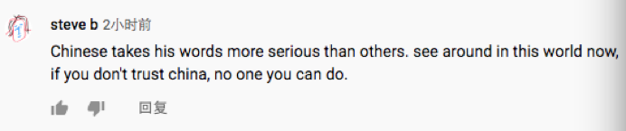中國對待自己作出的承諾比其他國家都要認真。看看我們現在的世界,如果不相信中國,你還能相信誰。