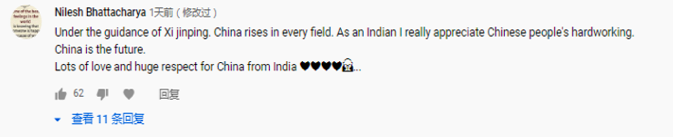 在習近平的領導下,中國在各領域都在崛起。作為一個印度人,我真心欣賞中國人的努力。中國就是未來。愛中國,尊重中國——來自一個印度網友的告白。