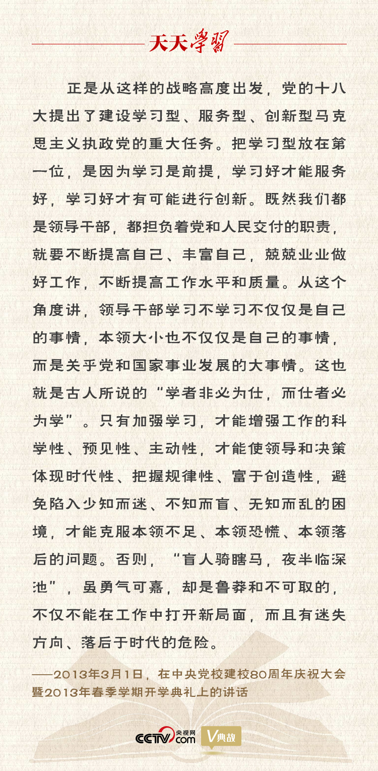 2013年3月1日,在中央黨校建校80周年慶祝大會暨2013年春季學期開學典禮上,習近平總書記站在全局和戰略高度提出了一個新論斷:中國共產黨人依靠學習走到今天,也必然要依靠學習走向未來。這是中國共產黨百年光輝歷程和偉大實踐的一條重要經驗總結,深刻揭示了“中國共產黨為什么能”的一個重要秘密所在。