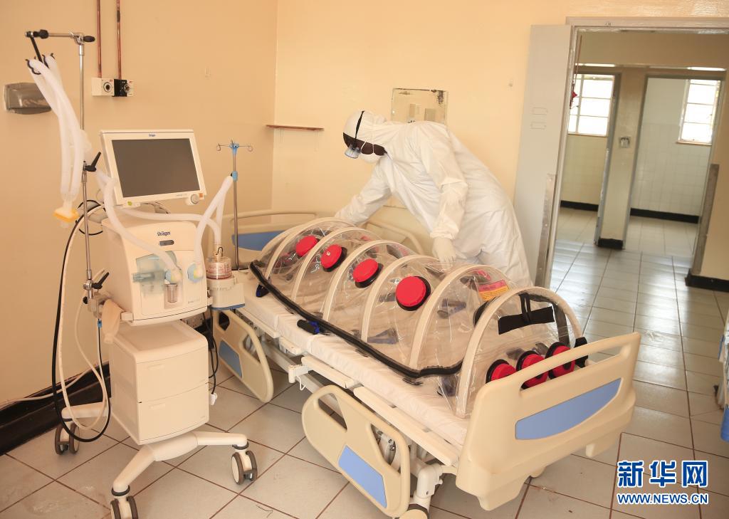 2020年4月9日,在津巴布韋首都哈拉雷,一名醫生在由中資民營企業出資升級改造的威爾金斯醫院內工作。升級改造后,醫院基礎設施和診治條件得到大幅改善,治療病患能力大大提升。新華社發(肖恩·朱薩攝)